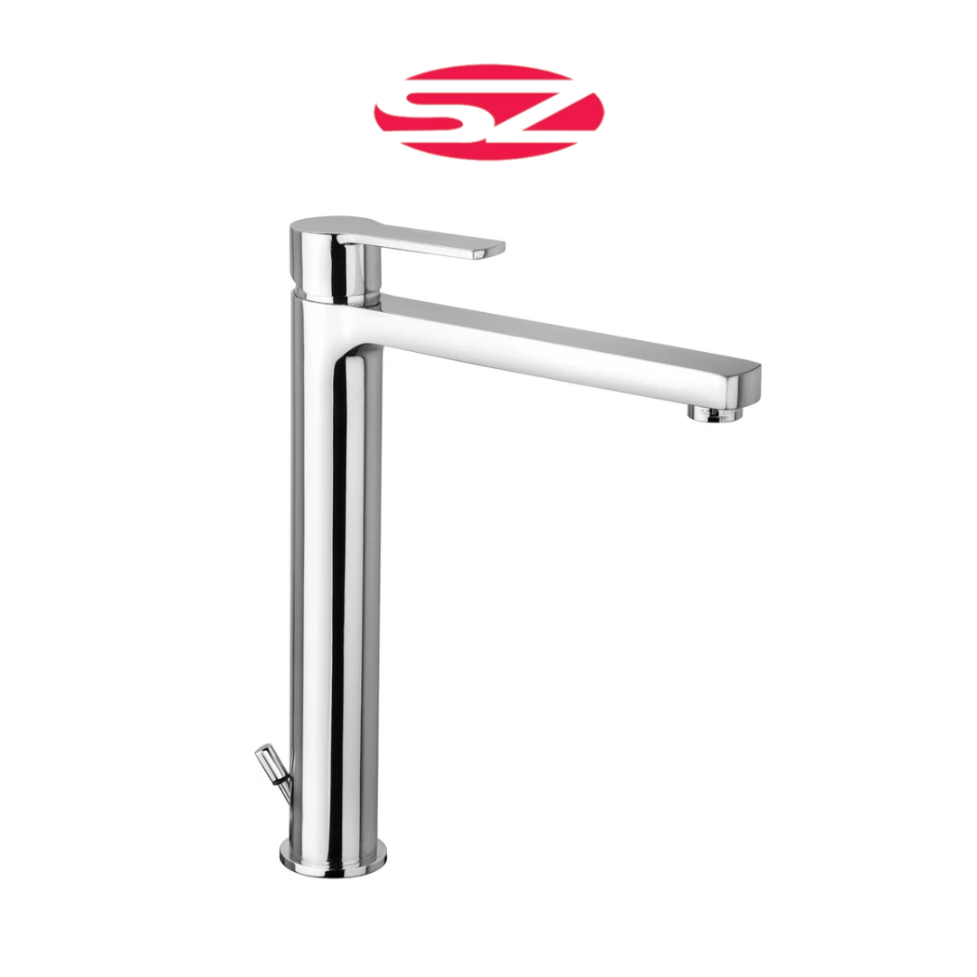 Miscelatore lavabo canna lunga completo di: • aeratore M24x1 • set 2 flessibili inox 3/8”G NT 085 con scarico automatico...