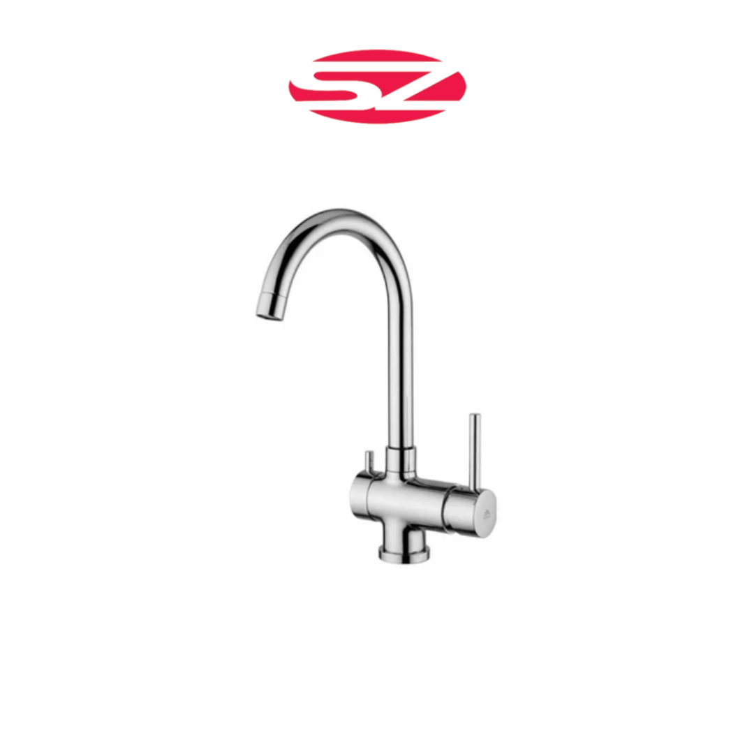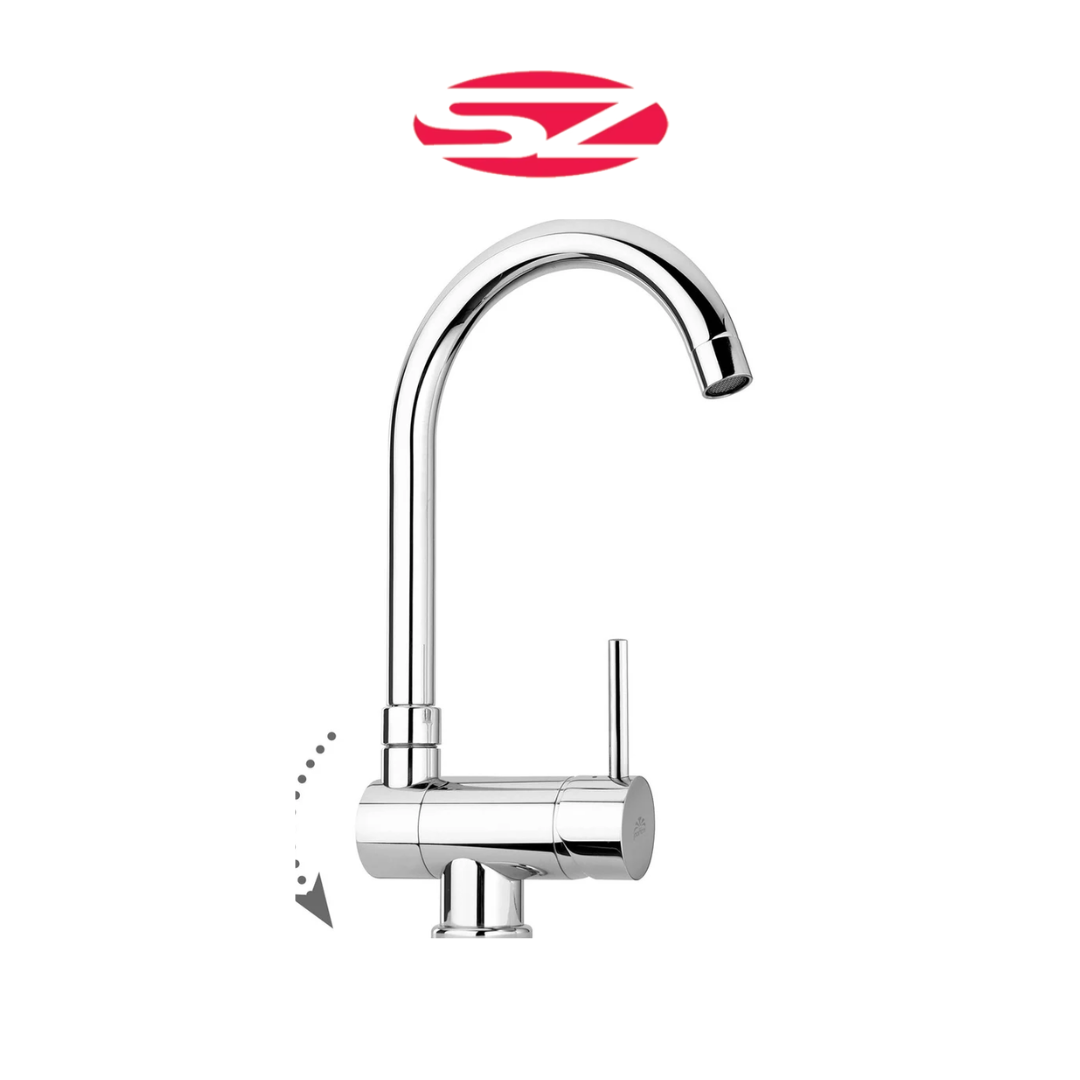 Miscelatore lavello monoforo con canna orientabile completo di: • set 2 flessibili inox 3/8”G • 1 flessibile inox M15x1 •...