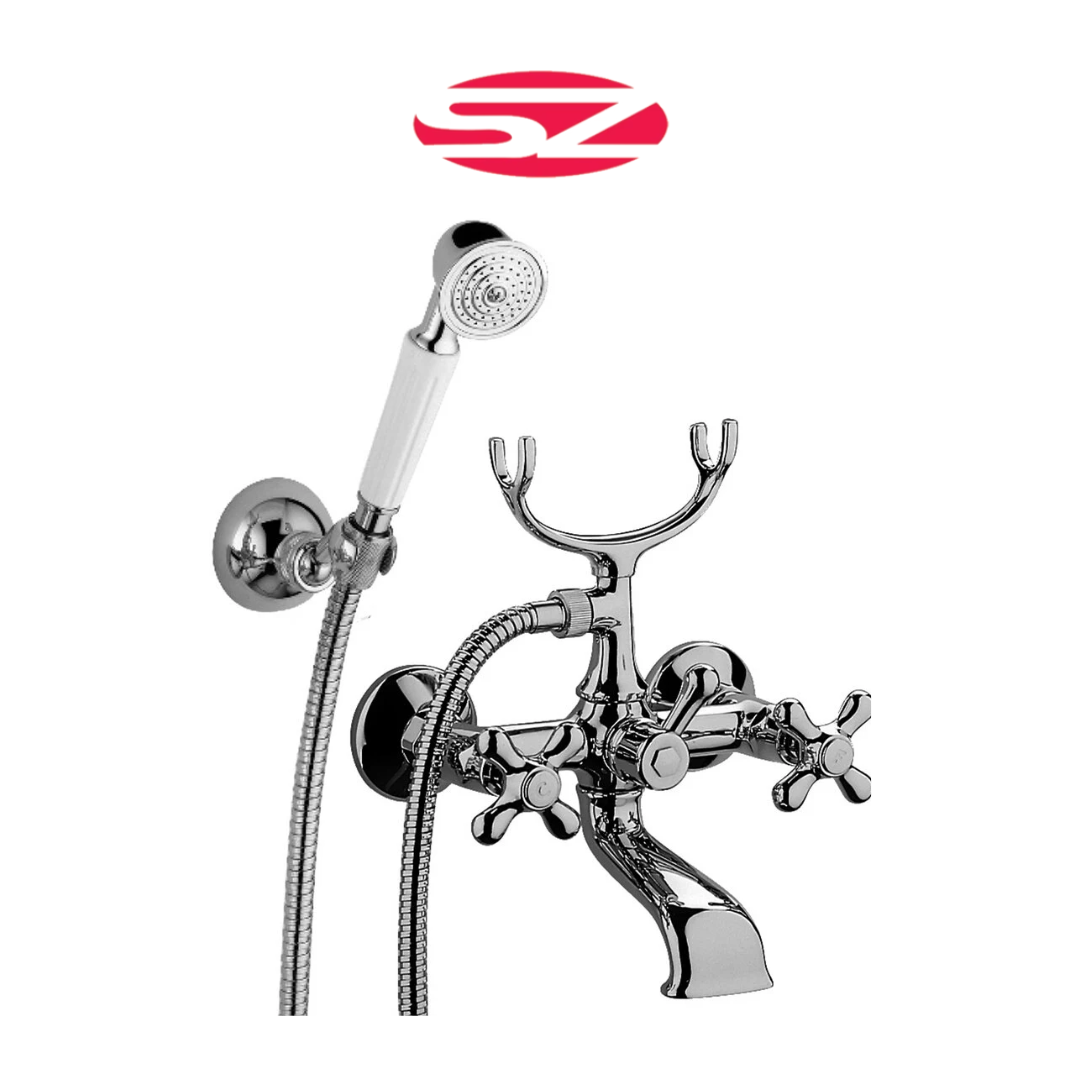 Gruppo vasca/doccia lusso con deviatore completo di: • forcella • doccia Iris in metallo • set 2 eccentrici 1/2”x3/4”G e...